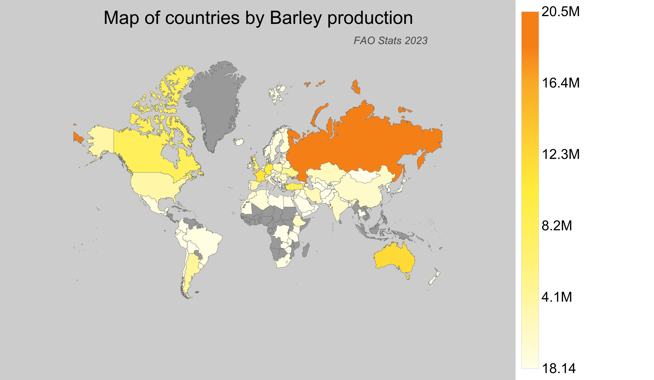 - Canada, although not one of the top four, is a notable producer with approximately 8.9 million tonnes of barley.