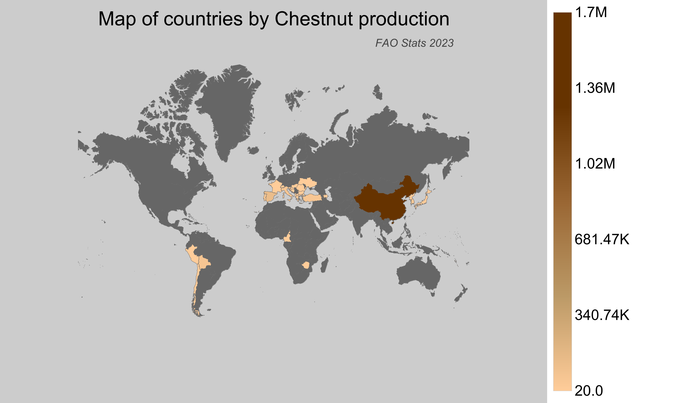 - China is the leading producer of chestnuts, with a staggering production volume of around 1.7 million tonnes.