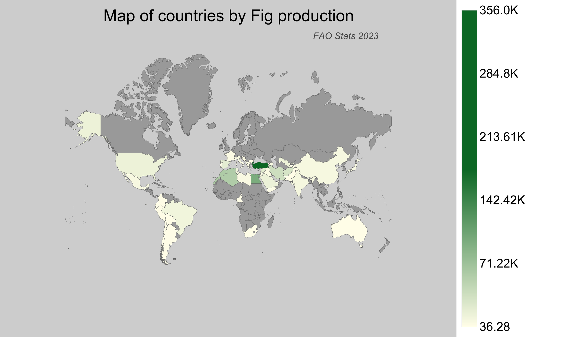 Figs are a vital part of global agriculture due to their nutritional benefits and versatile use in various culinary dishes. Figs thrive in warm climates, typically in Mediterranean and similar regions. The data presented here for the year 2023 is the latest available from the Food and Agriculture Organization (FAO) stats database, accessed in 2025.