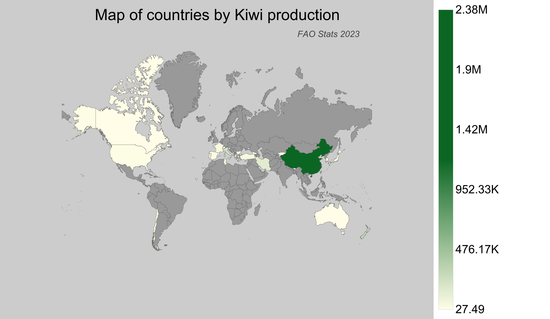- China: Leading the global kiwi production with approximately 2.38 million tonnes in 2023.