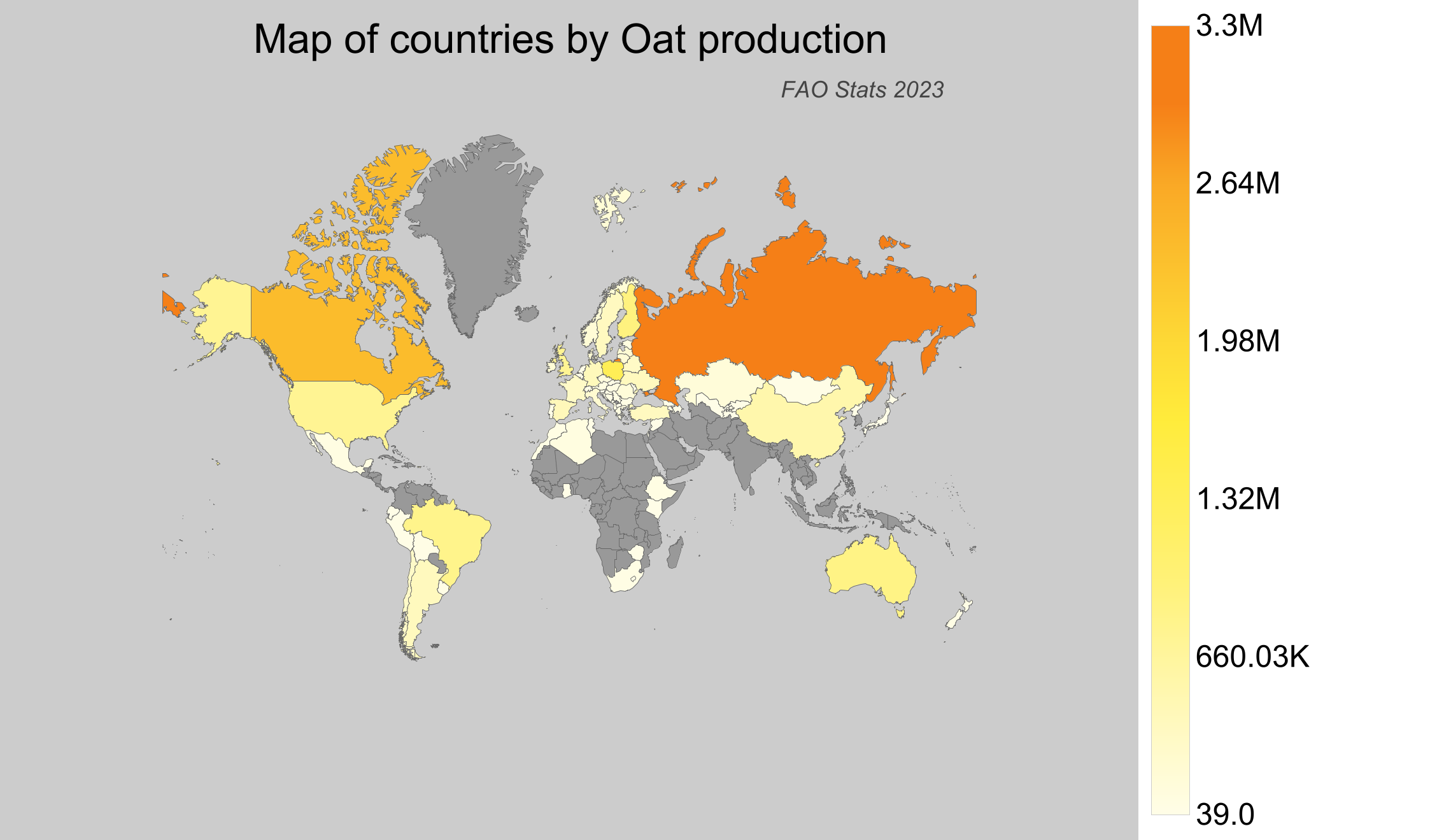 - The Russian Federation leads global oat production with around 3.3 million tonnes, showcasing its agricultural strength in cereal crops.