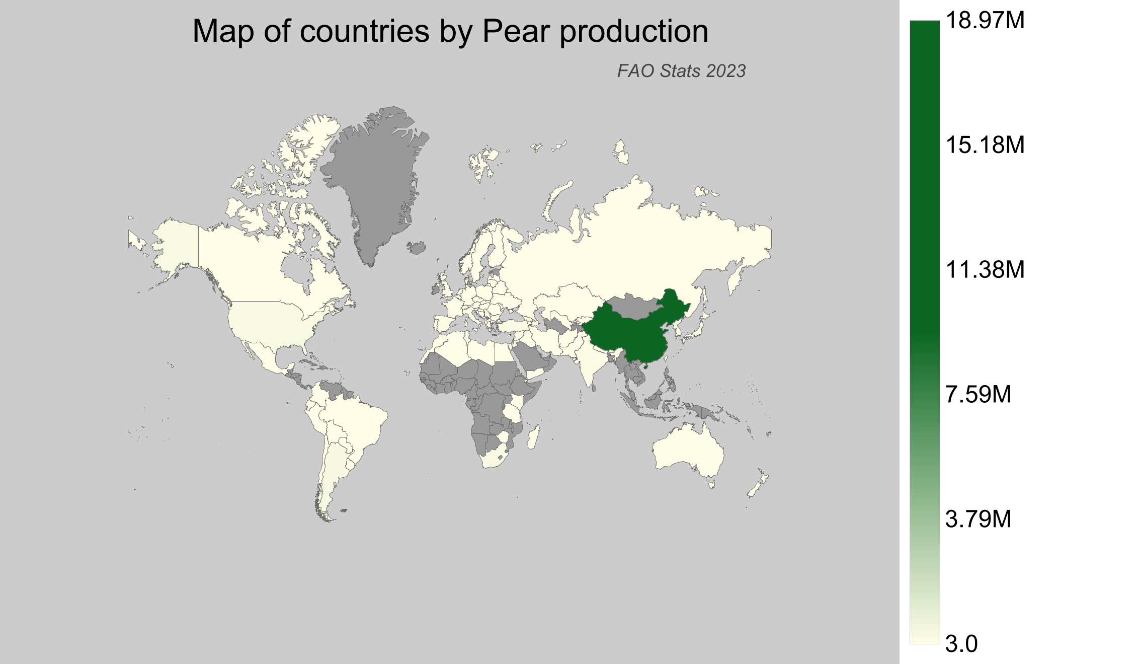 - China dominates the global pear production with an impressive figure of about 18.98 million tonnes.