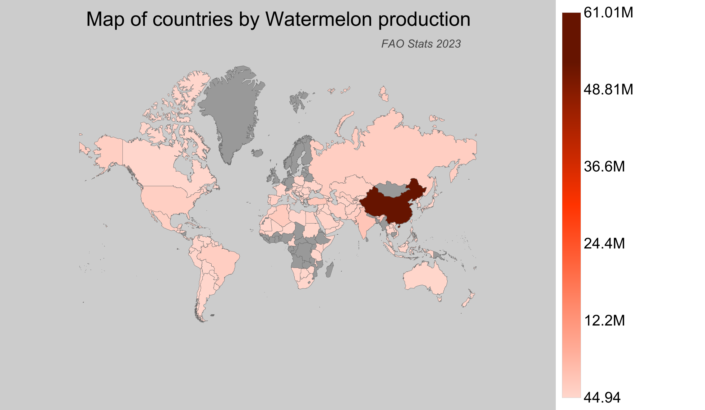 - China leads the world in watermelon production, achieving around 61 million tonnes in 2023.
