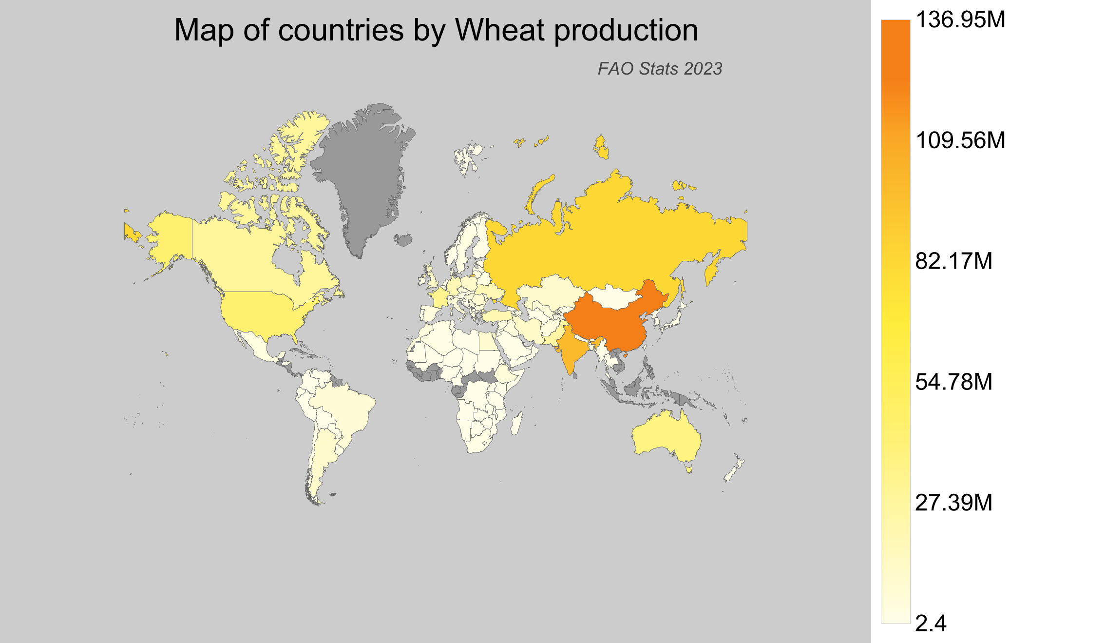 - China produced around 137 million tonnes of wheat, making it the top producer in 2023.